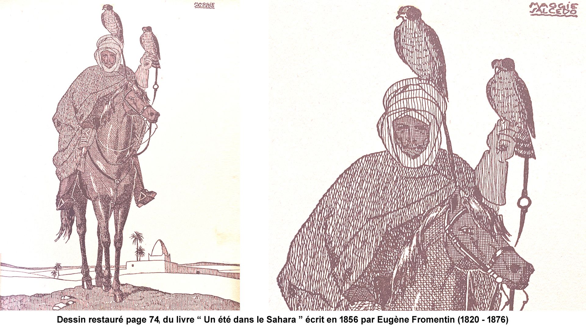 Eugène Fromentin 1820-1876 peintre orientaliste et écrivain, nous raconte ses voyages dans le Sahara, l'Algérie entre 1842 et 1852. Il a décrit ce remarquable décor avec beaucoup de précision et à le lire, je me trouve transporté en tous ces endroits, au milieu de gens d'autres contrées et cultures et bien dans une autre époque. Si vous trouvez ce livre, n'hésitez pas. C'est un récit absolument superbe écrit en 1856.