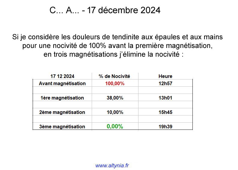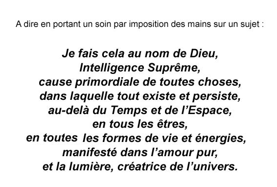 vous devez mesurez l'énergie vibratoire du sujet, et vous portez votre magnétisation, puis vous mesurez de nouveau et vous dites ce texte, puis vous mesurez encore.