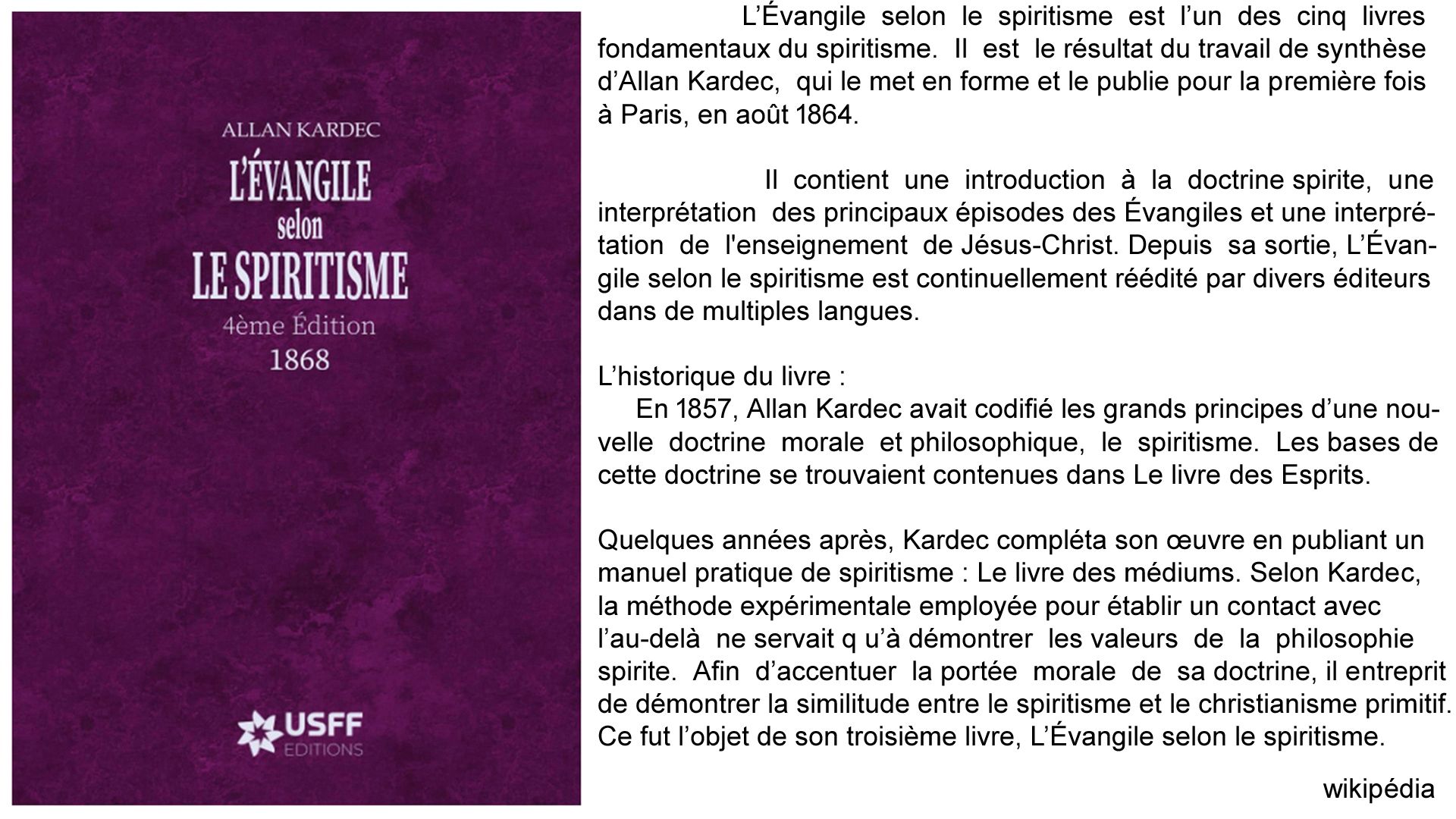 Et je vous présente ma dernière étude sur le livre de Allan Kardec publié en janvier 1868 :