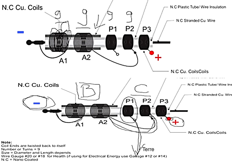 Sur les vidéos de La Fondation KFssi, Monsieur KESHE lui-même nous fait un dessin du fonctionnement et de la composition des batteries à plasma