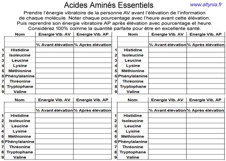 Il est possible également d'élever le pourcentage des Acides Aminés et là je travaille uniquement sur les Essentiels comme je vous le montre ci-dessous :